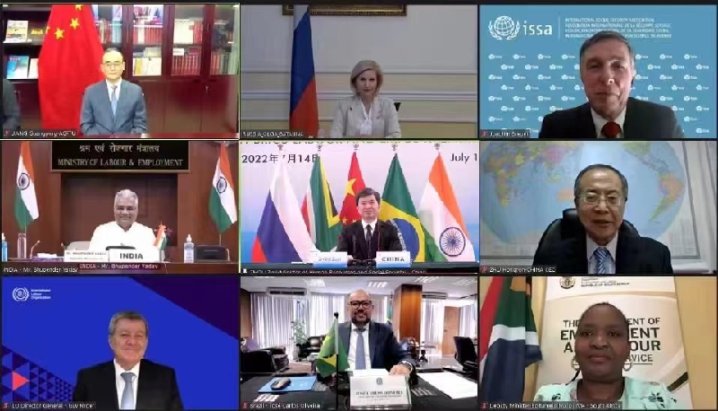 金砖国家劳工就业部长会议始于2016年,每年举办一届,已成为金砖国家合作机制的重要组成部分。今年的会议由中国人力资源社会保障部主办,南非就业和劳动部副部长莫洛依、巴西劳工和社会保障部部长奥利维拉、俄罗斯劳动和社会保护部常务副部长巴塔琳娜、印度劳动和就业部部长亚达夫、国际劳工组织总干事莱德、国际社会保障协会主席布罗伊尔等出席会议。